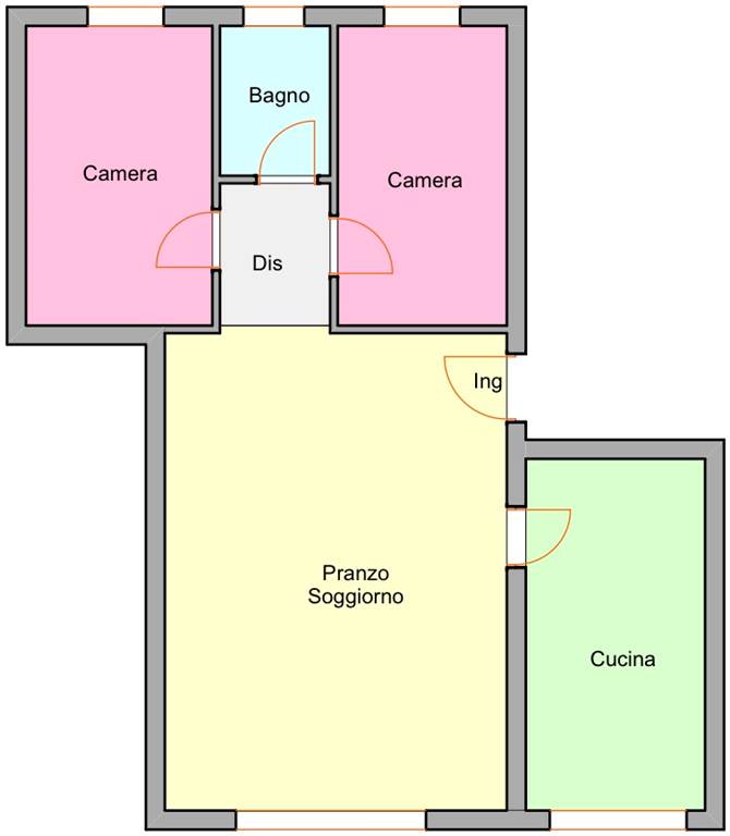 Pavullo n/F, adiacenze centro commerciale, proponiamo in vendita appartamento, in piccolo contesto abitativo, posto al piano terra e composto da ingresso su zona giorno, cucina semi-abitabile con camino, piccolo disimpegno con due camere (una matrimoniale e una singola) e bagno.