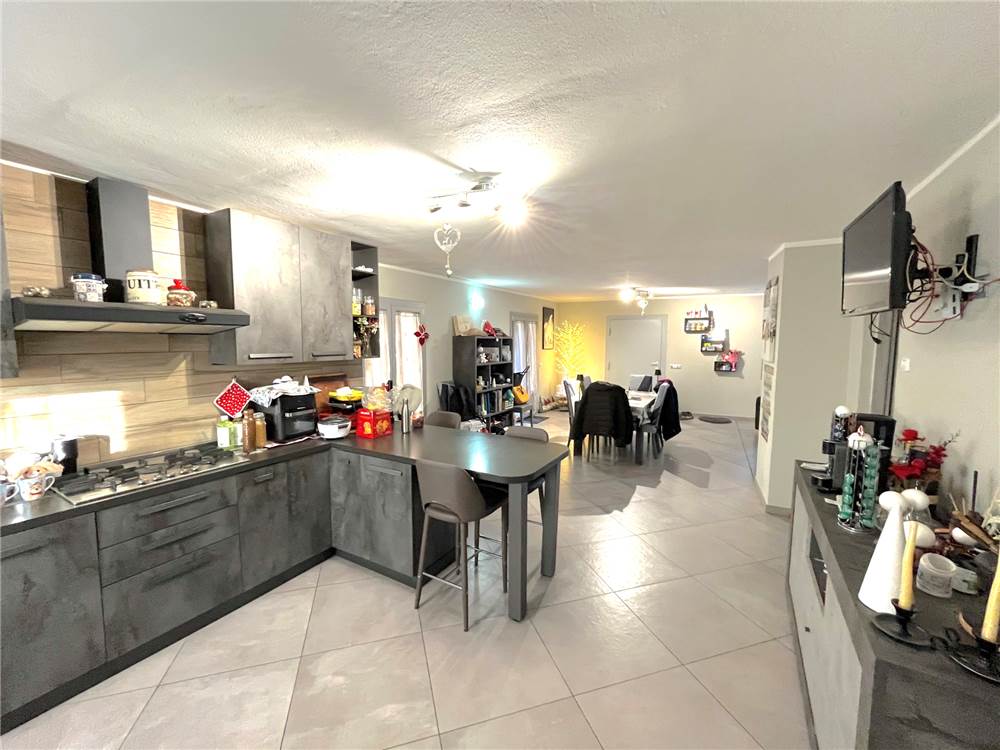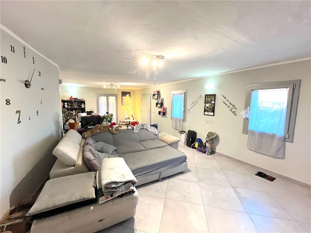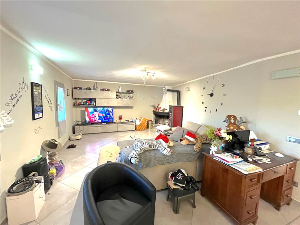 Piano terra composto da ingresso sul pranzo-soggiorno con camino, cucina abitabile a vista, portico con accesso sul giardino privato di oltre 2.000 mq. tutto recintato, ripostiglio/CT, disimpegno, ampio bagno, scala che collega il piano primo composto da 5 stanze e bagno. Completa la proprietà un ampio locale ad uso cantina al piano S1. Riscaldamento a PAVIMENTO.
